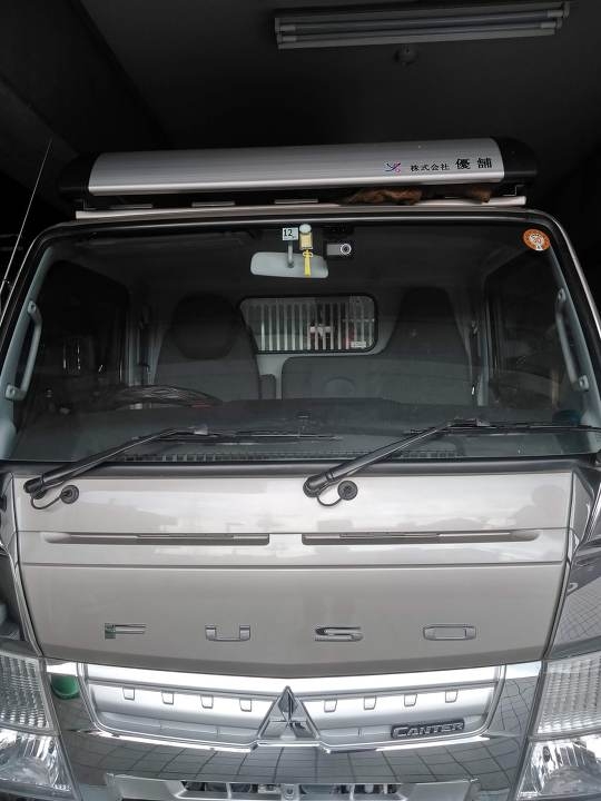 ダンプとWキャブトラックには前方用を、連絡車と営業車には前後用を取り付けました。