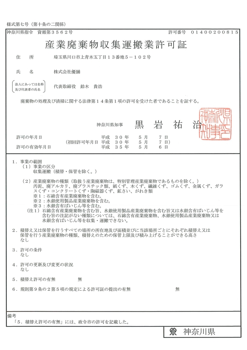 産業廃棄物収集運搬許可証