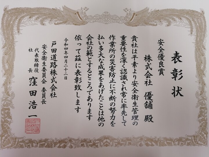 このような工事表彰や安全表彰といった名誉あることは、プライスレスで