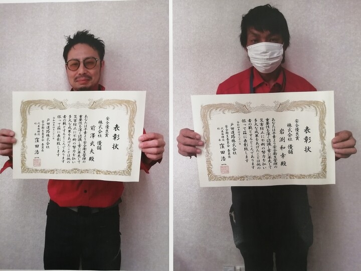 会員社員の部、それぞれで安全優良表彰を受賞致しました。